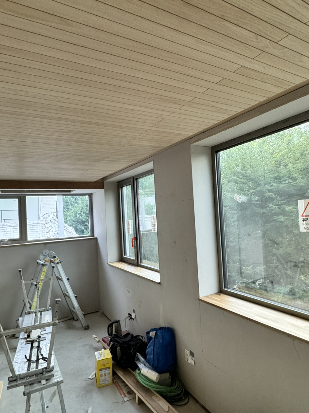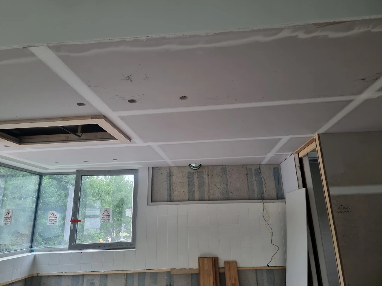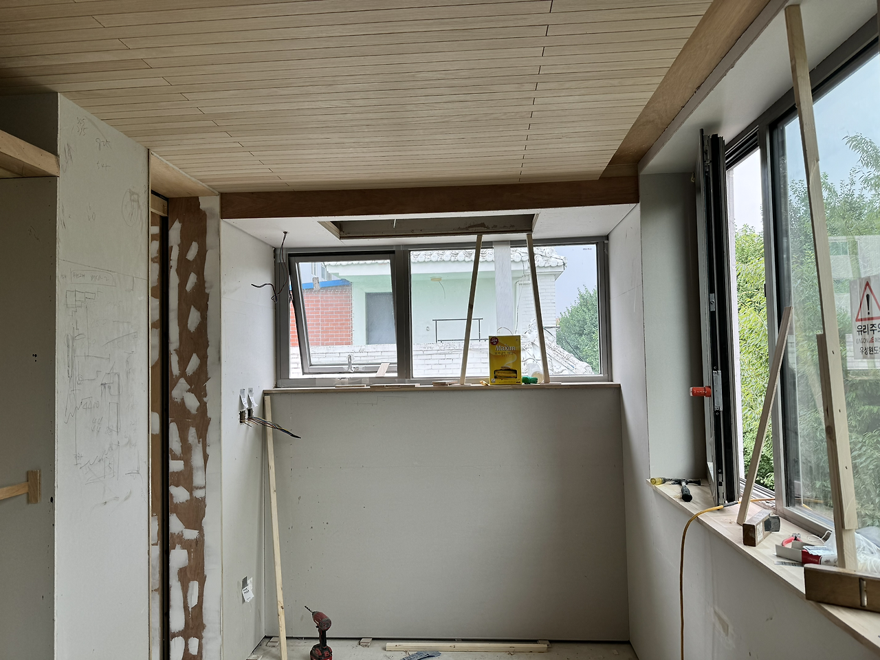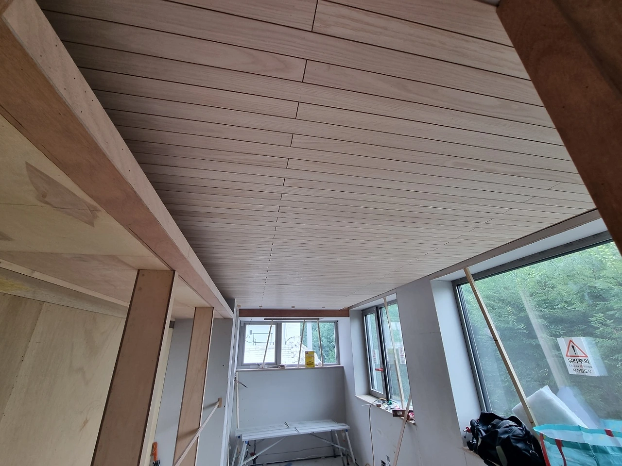 1. 내장목공 - 4층 천장 루버, 창대목 설치 시작