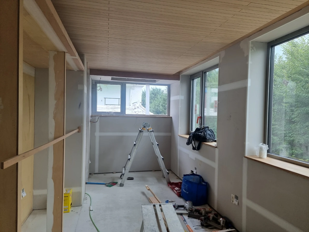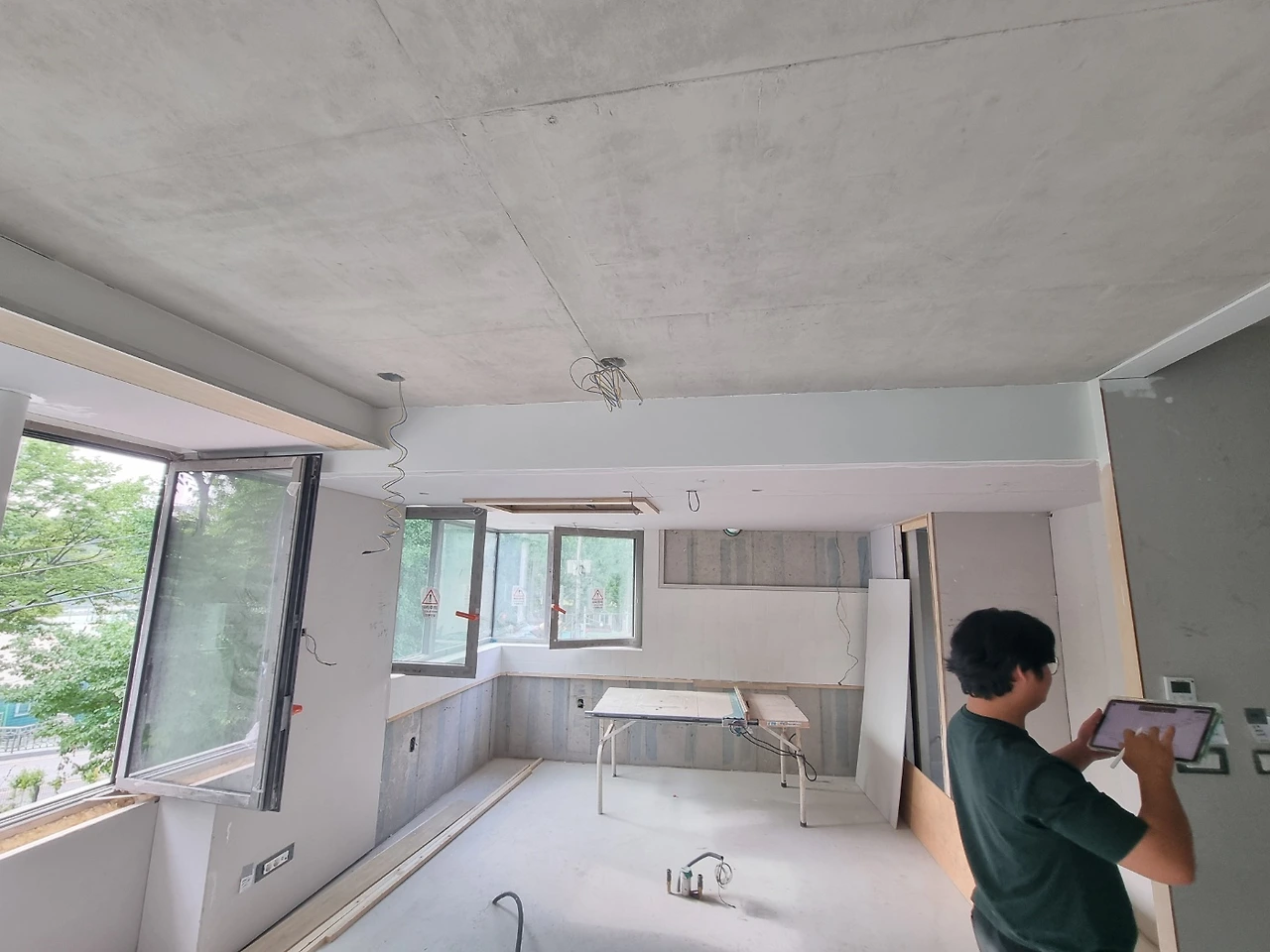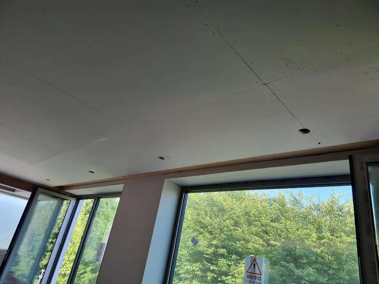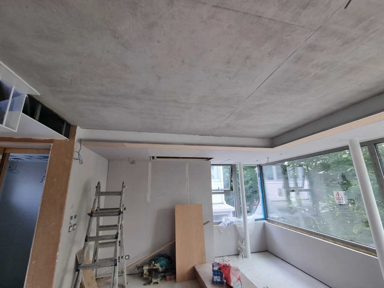 1. 내장목공 - 4층 천장 루버, 창대목 설치 시작
