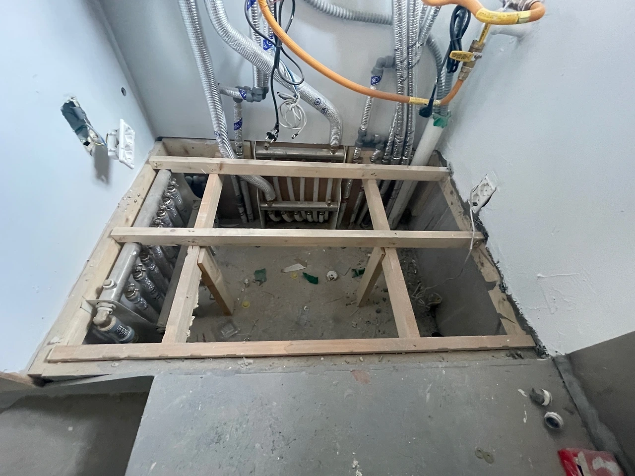 도배 전에는 물을 쓸 수 있는 환경이 준비되어야 하므로, 도배 시기 전에 위생도기가 들어와야 하는데 견적을 받은 구매처에 재고가 부족한 모델이 있어 도배보다 배송이 늦다. 다행히 현장에 확인하니 물이 나오고 배수가 되면 된다고 하여 한번에 배송받는 것으로 정리했다. 조명은 금주에 현장에 반입되고 일주일 내 제품교환이 되기 때문에 현장의 확인이 필요하고, 다음 주에 예정된 원목마루 시공 전 방통이 바짝 말라있어야 하므로 미리 보일러를 틀어놓아 달라는 이건마루의 요청이 현장에 전달되었다. 몰탈이 마르면 바로 마루를 깔 수 있는 줄 알았는데 수분함량을 직접 확인하고 기준에 도달하지 못하면 시공을 하지 않는다고 한다. 바닥 몰탈에 일부 크랙이 생겼는데 잘 마를수록 더 많이 생기는 거라 좋은 현상이라고 한다.