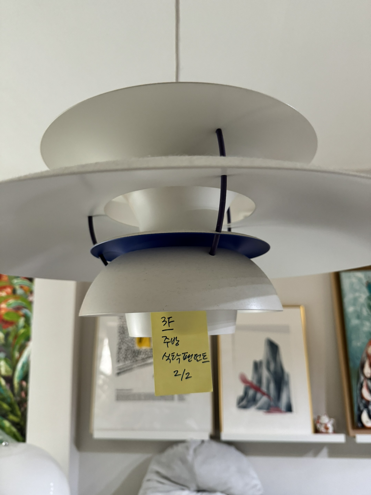 보유하고 있던 PH5, PH3 펜던트 등들은 위치에 맞게 설치를 하되 긴 전선은 자르기 않고 묶어두고 나중에 조정하기로 한다. 펜던트 등은 나중에 위치를 바꿔어 사용할 수도 있기 때문에 전선줄을 여유 있게 확보해 두는 편이 활용도가 높다. 아파트 등 공동주택에 살다 보면 공간의 정중앙에 조명이 달린 구조가 익숙하지만, 펜던트 조명은 필요에 따라 이리저리 옮길 수 있는 게 장점이기 때문이다.
