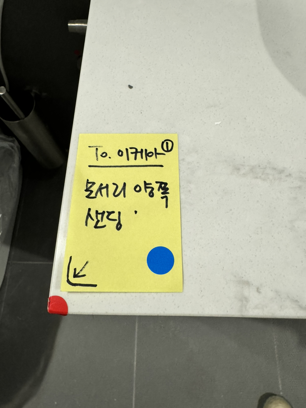 오늘 욕실 거울장이 배송되고 도기까지 다 준비된 후 금주 중 욕실 설비 작업이 진행될 예정이라 그전에 조소장님과 욕실 액세서리 배치를 함께 확인해야 한다. 외부에 쓰이는 자재 선정도 남아서 옥상 콩자갈 타일(봉림산업)과 외부 손스침 목재(영진목재) 샘플 확인 차 공장 방문 예정이다. 또, 지난주 설치한 이케아 주방 재작업과 욕실 가구설치 일정도 목요일로 잡혀있다. 서로 일정이 부딪히지 않도록 현장에 공유하고 필요한 부분을 미리 점검해 보았다.