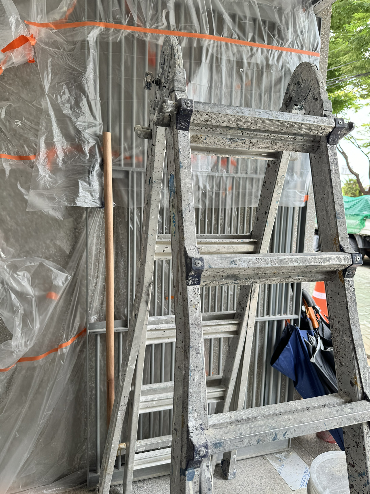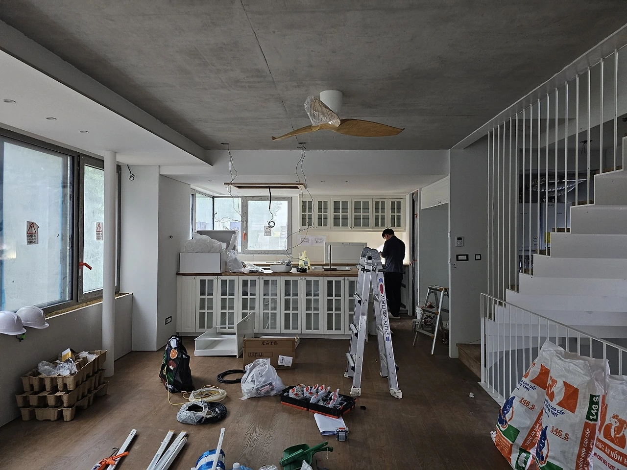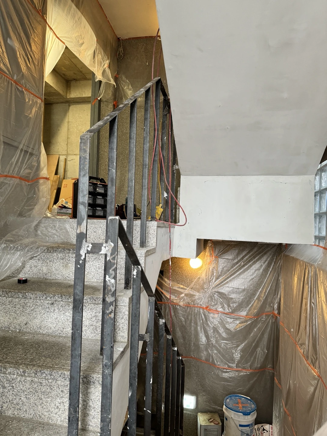 내부 계단과 천장 등 도장작업이 종일 진행되었다. 도장은 한 번에 끝나는 일이 아니라 여러 번 바르는 과정을 반복하고 중간에 갈아내고 다시 칠하기도 하면서 점점 매끈해진다. 집중력과 끈기가 필요한 작업이다. 게다가 주변에서 먼지를 일으키거나 하면 문제가 되기 때문에 다른 작업과 겹치지 않게 단독으로 진행하는 게 낫다.