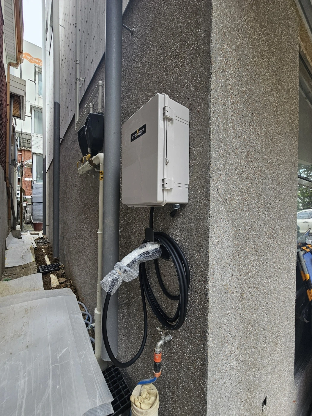 이른 아침 전기차 충전기 설치 업체가 방문해서 금방 설치를 마쳤다. 개인용 충전기라 등록된 카드로 충전하고 전기요금을 내는 방식이다. 7W 완속충전이고 별도의 전기인입 신청을 해야 하는데 설치업체에서 한전에 전력공급 신청 처리까지 해주었고 별도의 인입비용(60만 원가량)이 한전으로부터 청구되었다. 사용은 안전검사 후 필증이 붙은 계량기가 지급되고 사용할 수 있게 된다고 한다.