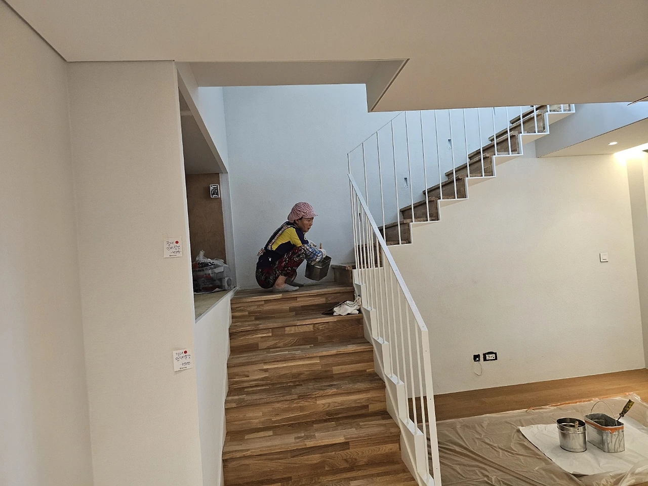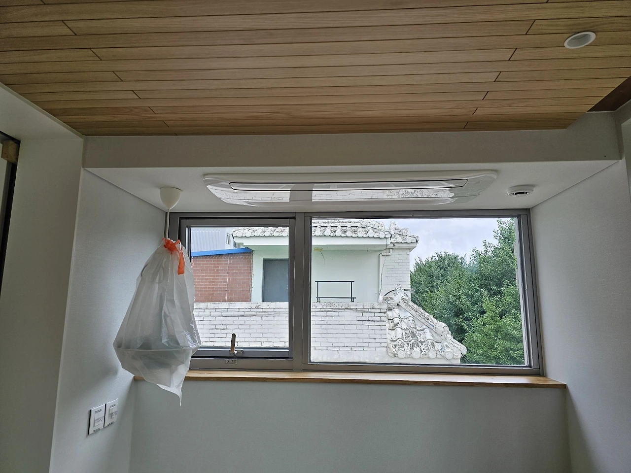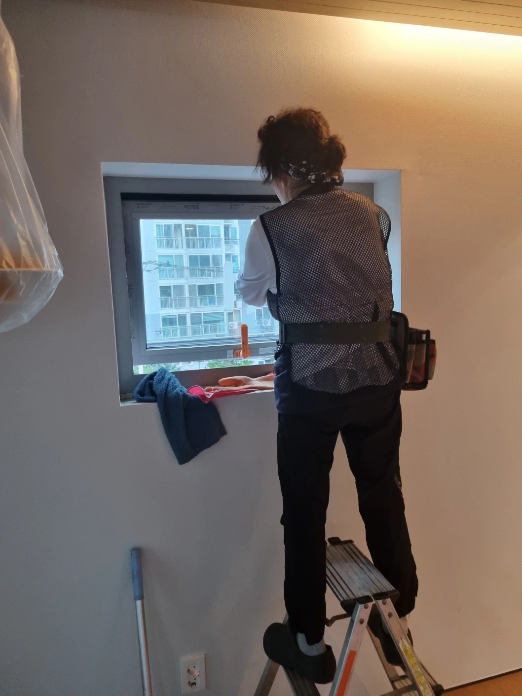 상가가 들어올 1층 출입문이 보기 좋게 설치되고 옥상 유리펜스와 데크작업도 마무리되었다. 주방 천장의 엘리카 후드는 설치를 시도했으나 목재 틀 내부에 세워놓은 지지대 때문에 잘되지 않았다. 무게도 있고 고생을 했을 것 같은데 아쉽게 되었다. 청소가 한창이었을 텐데 여러 작업이 부산하게 진행된 게 신기하다. 창틀과 벽, 바닥 등 구석구석 사람 손으로 청소를 했으니 이제 공사장 느낌보다는 집에 가까워졌겠다.