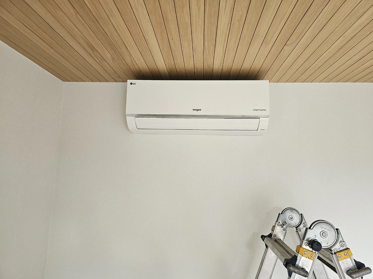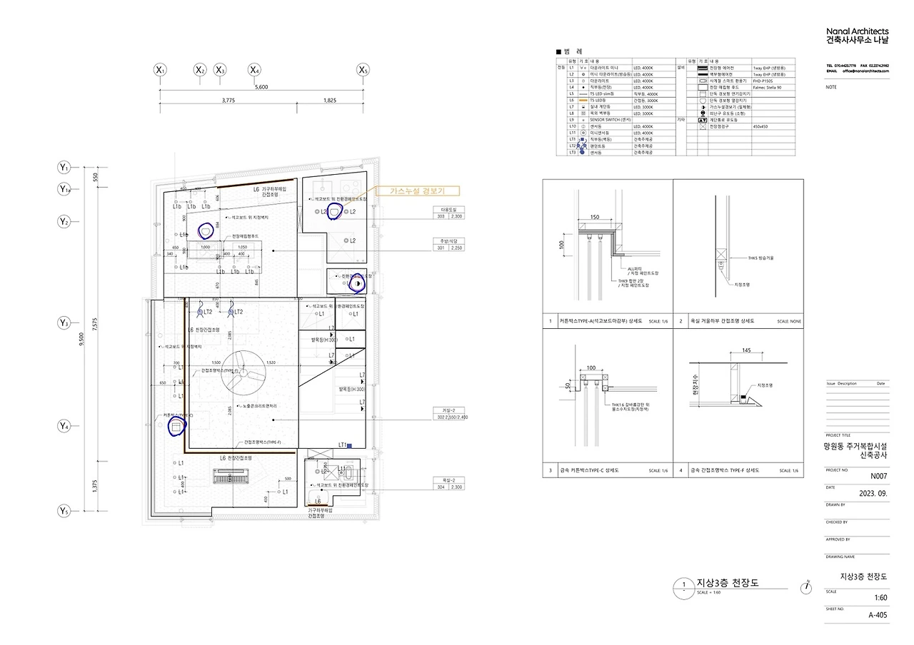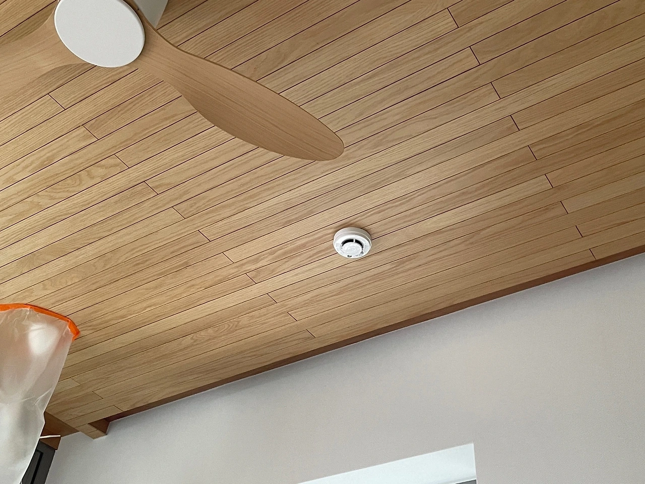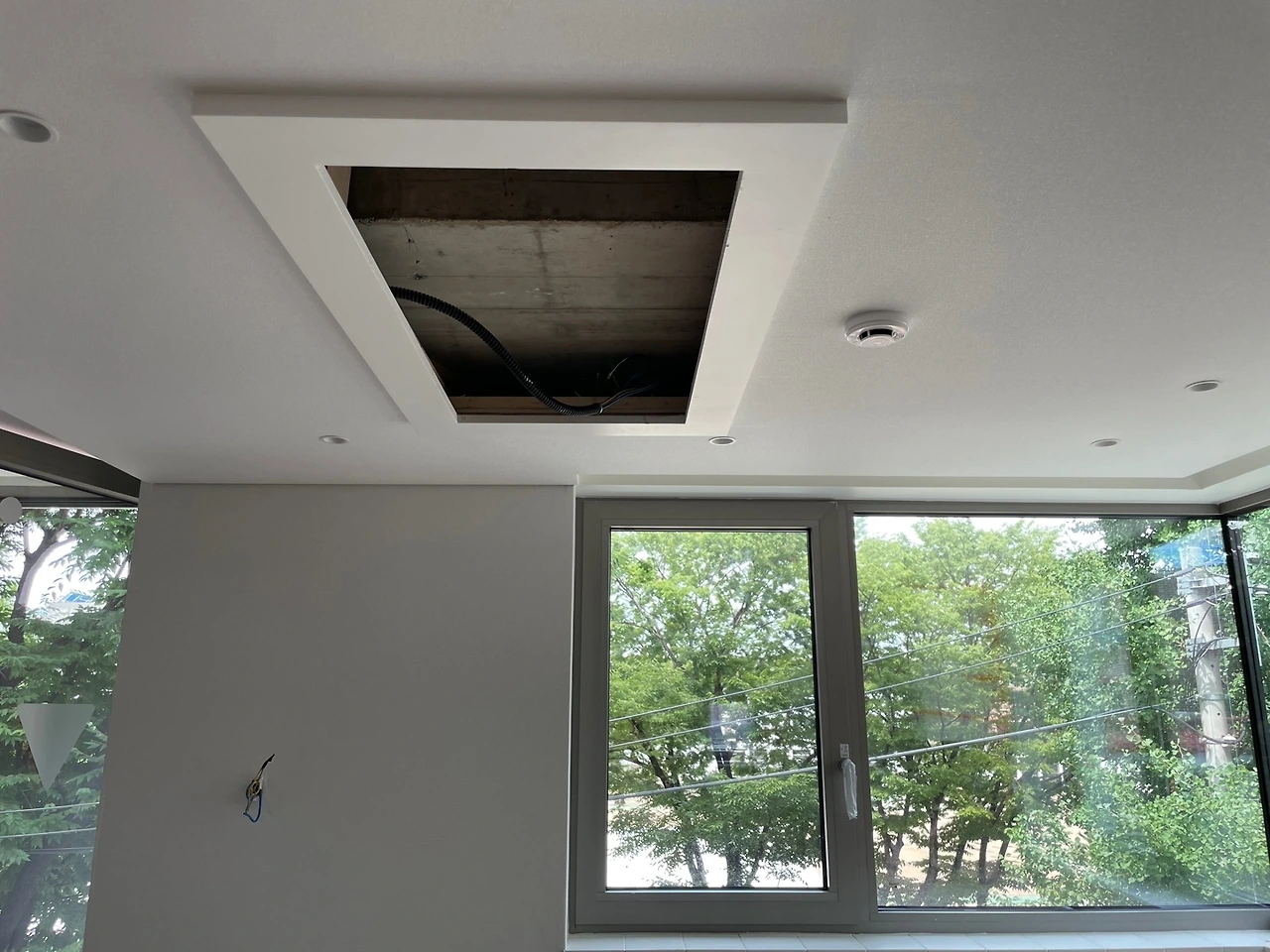 각 실마다 화재감지기를 설치해야 하므로 각각 천장에 위치를 잡았다. 3층 다용도실에는 인덕션을 쿡탑(도시가스)으로 변경하였기 때문에 감지기가 가스누설경보기로 변경되고 이런 설치작업도 전기에서 한다.