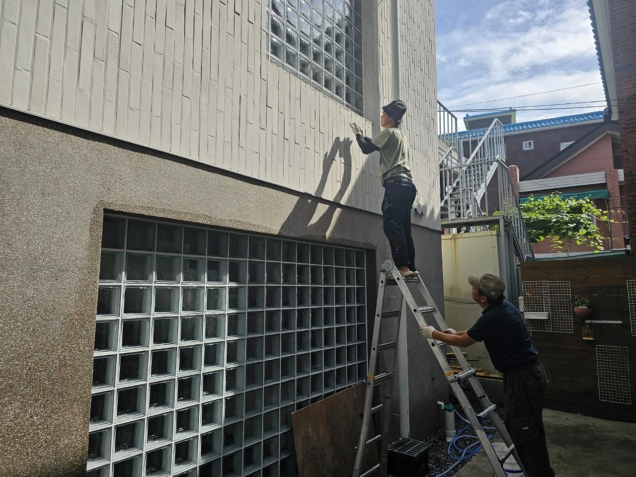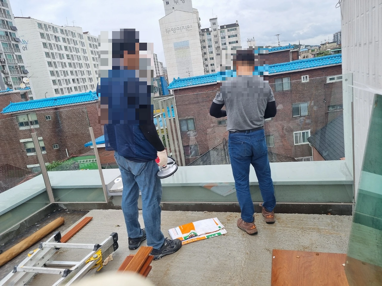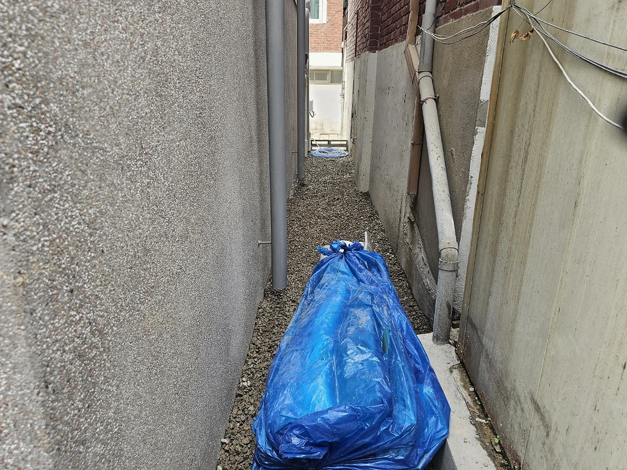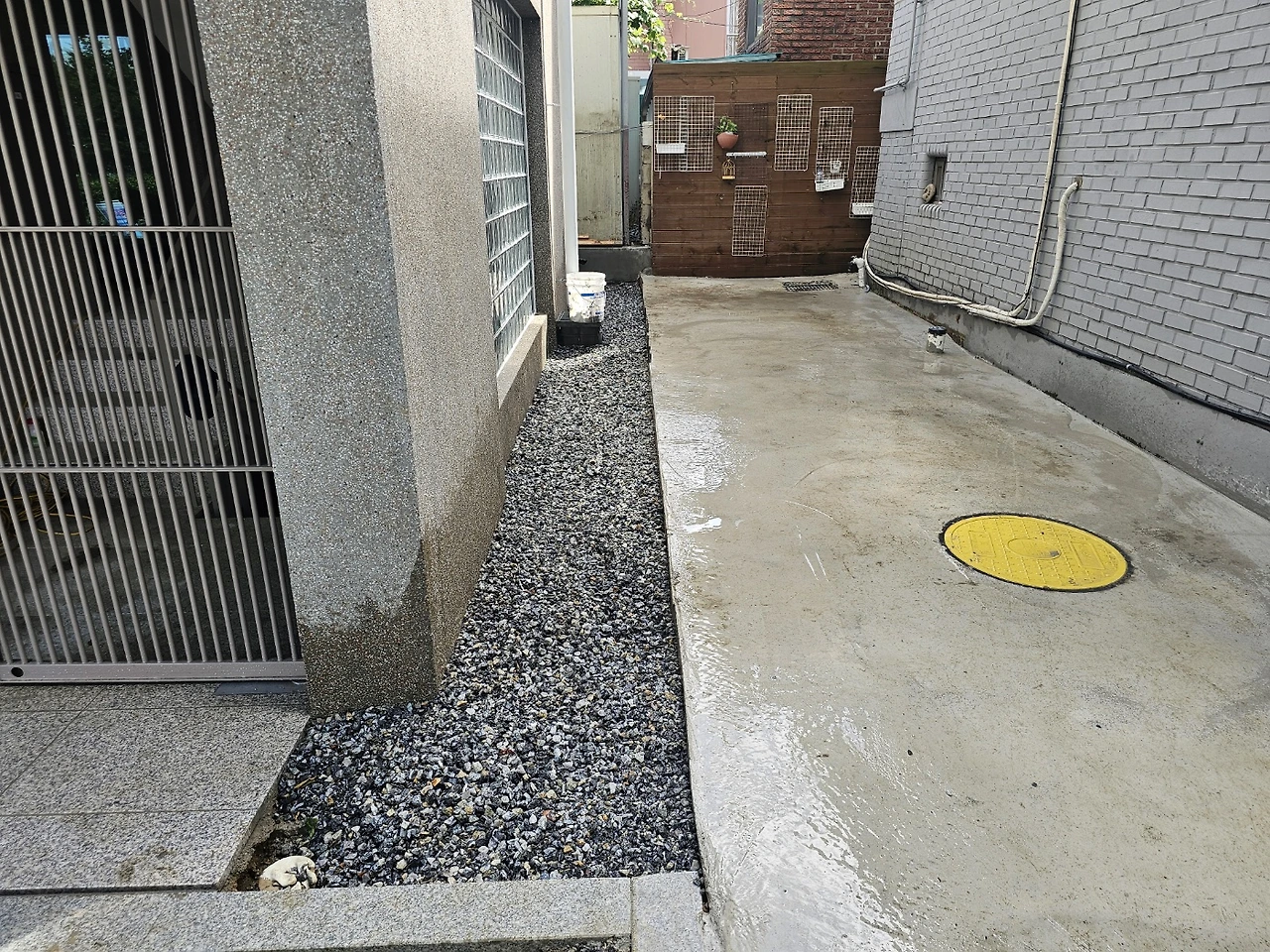 명일 : 이웃 주차장 방수작업 및 배면 잡석 깔기, 주차라인 도장