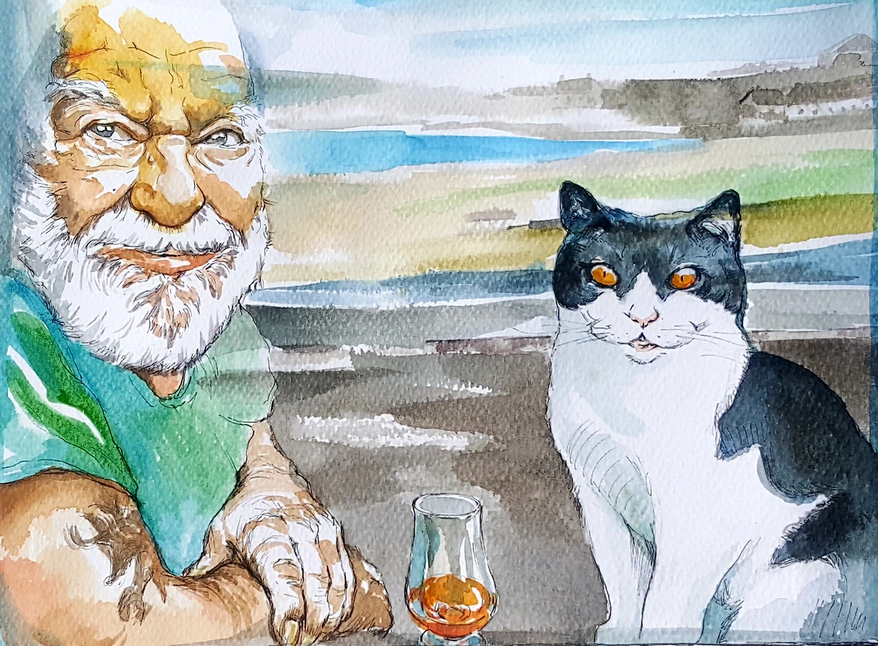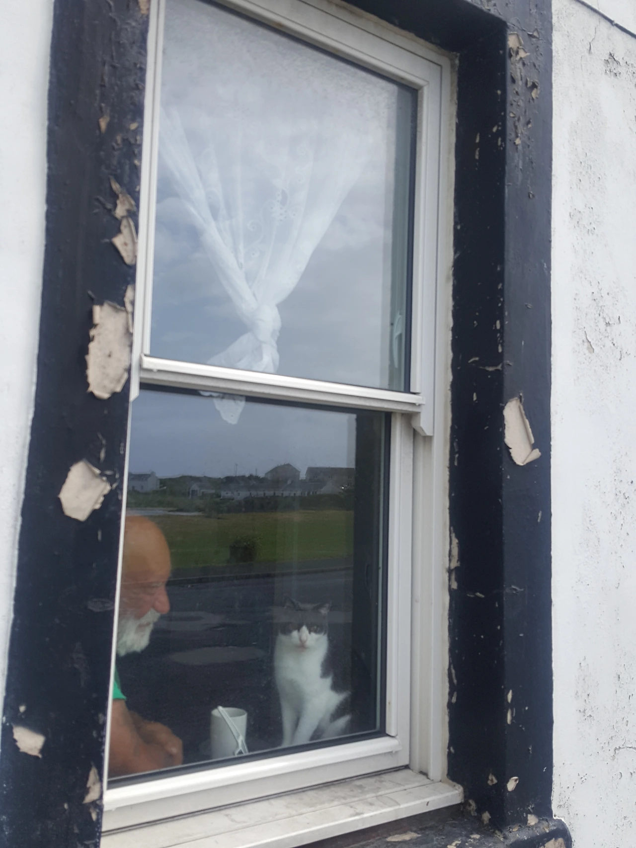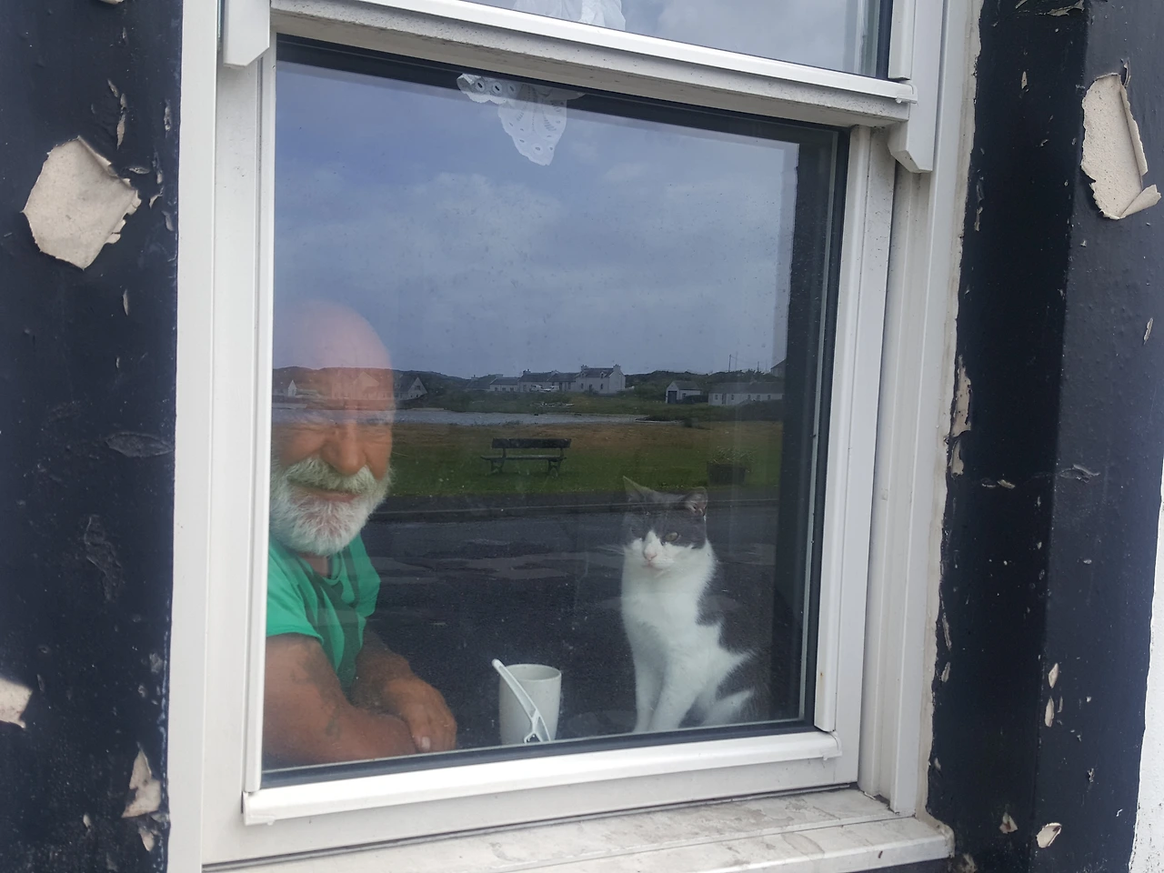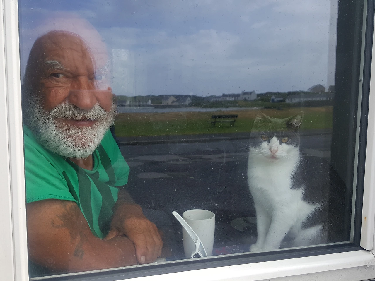 아일라의 포트 앨런에 있는 슈퍼마켓에 음식 재료들을 사러 갈 때마다 바로 옆 작은 쪽창에 앉아서 차를 마시고 있는 할아버지를 만나게 된다.