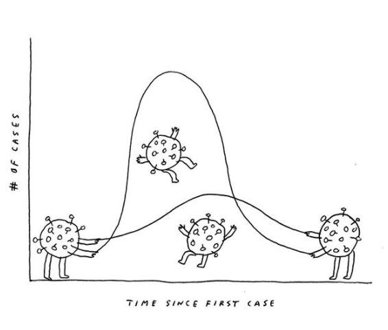 “Flatten the Curve”는 사회적 거리를 둠으로서 질병의 급격한 확산 속도를 늦추자는 캠페인 문구입니다. 입에 착 달라붙습니다.