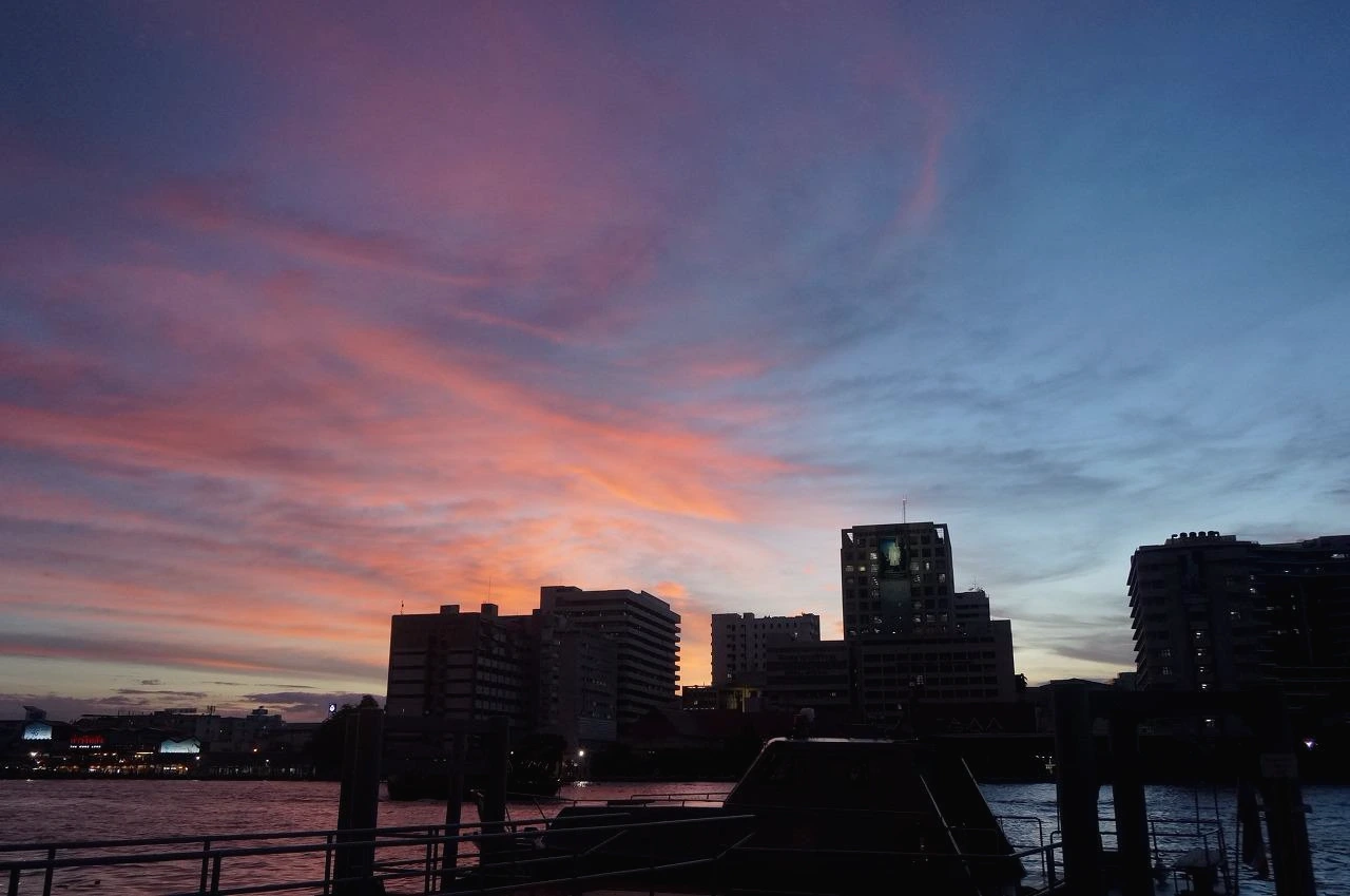 열심히 길을 잃고 열심히 목적과 대책 없이 걸어 다니는 게 가장 이번 여행다운 방법이라 생각하고 왓포에서 나올 때부터는 지도 없이 마음 가는 대로 발길을 돌렸다. 살짝 돌아간 골목에서 수상버스 선착장을 발견했다. 엎어지면 코 닿을 아주 짧은 거리를 다니는 배였지만 해질녘을 배 위에서 맞을 수 있었다.