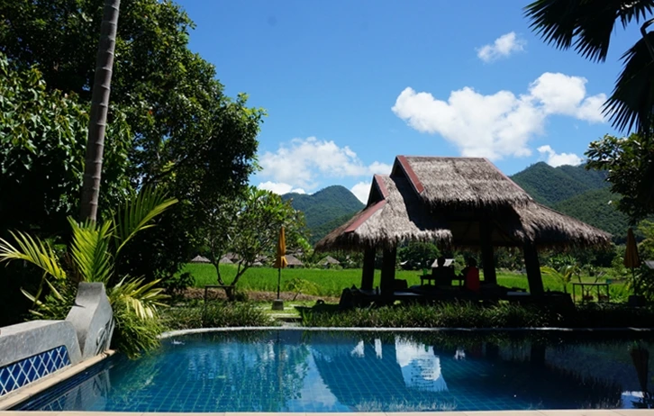 아침에 일어나 트립어드바이저 앱을 켜서 근처에 뭐가 있나 살펴보다가 '왓매옌'이라는 곳이 근처에 있다는 정보를 줍고 천천히 나갔다. 하얀색 부처상이 있는 사원이라고 했다. 가는 길은 빠이답게 비포장도로 언덕길이었다. 구비구비 시골길을 걸었다. 사람들은 다 바이크를 타고 내 옆을 지나쳤다. 운전면허가 없다는 게 조금 서러웠지만 어디서든 잘 걷는 튼튼한 내 다리가 행여 삐질라 마음을 다잡았다.