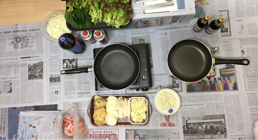 아득하게 떠올리는 고기먹은 날 밤 기억.)