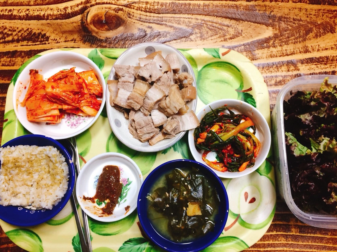 어제까진 차려주는 밥을 먹다가 오늘부턴 (다시) 차려먹으려니 약간 어색하기까지 한 밥.