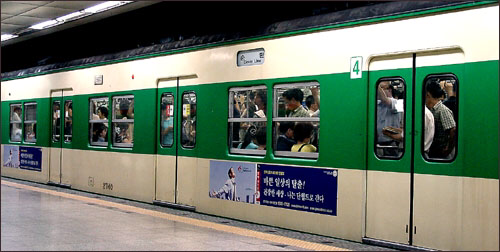 눈 둘 곳도 없이 실려가는 빽빽한 사람들의 이미지. 척하면 척 떠오른다. 아주 상징적이다.