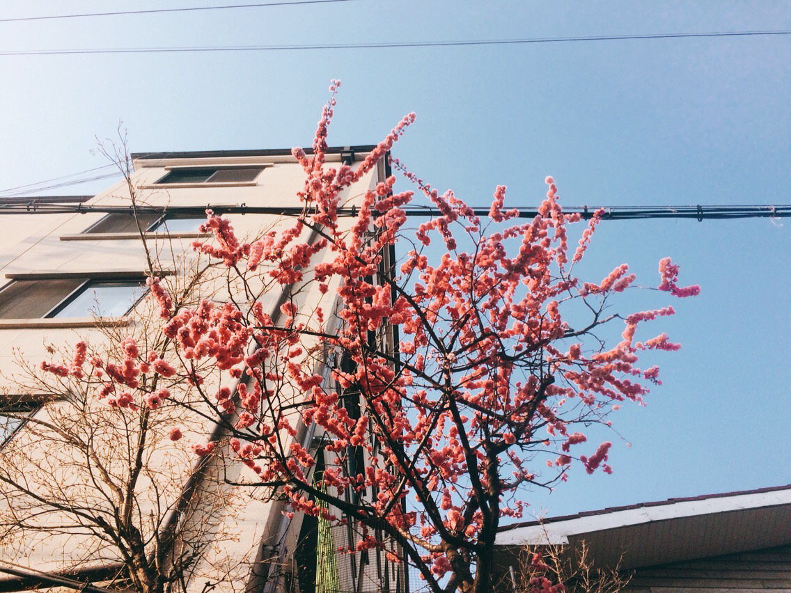 사시사철 푸른 꽃 같은 친구와 단 일주일 최고의 봄기운을 뽐내는 벚꽃잎.