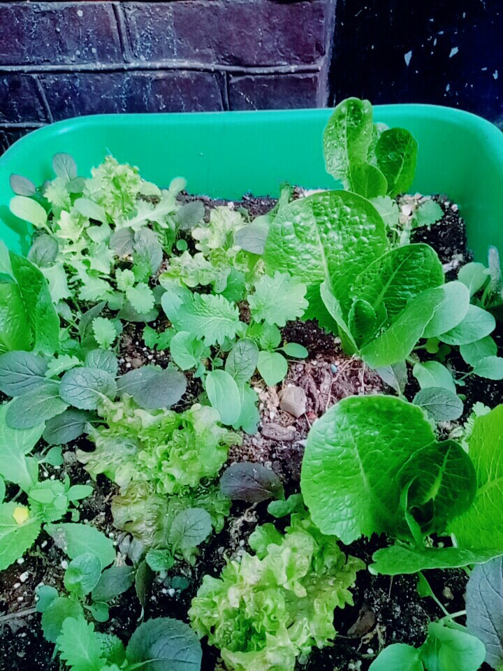 화단에 핀 상추와 바람에 휘날리는 나뭇잎의 초록이 싱그러웠다.