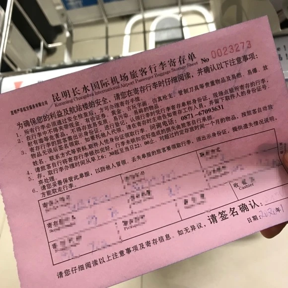 쿤밍에서의 노숙을 무사히 마친 후, 시내로 나가기 위해 3층 출국장으로 향했다. 1층으로 굳이 가지 않은 이유는, 달라붙는 택시 기사들이 너무 많다는 글을 어디선가 읽었기 때문이었다. 알람을 맞춘 7시에 일어나 3층 출국장으로 올라갔다. 방문했던 기간은 1월 초였기 때문에, 7시가 다 된 시간에도 밖은 동이 트지 않은 컴컴한 새벽이었다. 카페에 앉아 따듯한 녹차라떼를 한 잔 하며 동이 트기를 기다리다, 문득 짐을 맡기고 출발해야겠다는 생각이 들었다. 공항 직원분께 ‘혹시 짐을 맡길 수 있는 곳이 있나요’라고 여쭤봤지만, 돌아오는 대답은 ‘없다’였다. 공항에 짐 맡기는 곳이 없을 수가 없다는 생각이 들어서 무작정 공항 곳곳을 헤집기 시작했는데, 그렇게 구석에서 발견한 짐 보관 센터. 여권을 주면, 네임카드를 하나 작성하고 추후 짐을 되찾을 때 카드를 보여주면 된다. 짐을 맡길 수 있다는 생각에 신이 나버려 비용이 얼만지 묻지도 않고 그냥 그대로 나와버렸는데, 알고 보니, 데스크 옆에 있던 계산표가 있었다. 쿤밍 공항은 시간당, 그리고 짐 개수 당 비용을 책정한다. 역시 이번에도 배웠다. ‘세상에 공짜란 없는 법’.