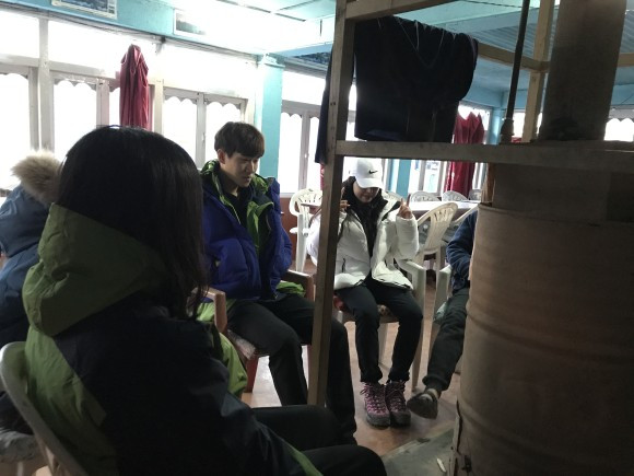 소개가 늦었지만, 이번 트레킹을 준비하며 대원들과 <여행노트>를 제작했다. 하루 별로 하나의 질문을 던지며, 스스로를 돌아보는 시간을 만들어주고 싶었기 때문이다. 실제로 우리는 롯지에 도착해 밥을 먹고 개인적인 시간을 보내고 있다 보면 어느새 하나둘씩 로비 테이블로 여행노트를 들고 모였다. BGM을 하나 선정해 노트의 질문을 답하고, 그 답을 대원들과 공유하는 시간을 가졌다. 누군가 보면 오그라들 수도 있겠지만, 우리는 그 시간들로 인해 서로를 배웠고 서로의 진심을 통해 스스로를 한 뼘 더 성장시킬 수 있었다고 믿는다.