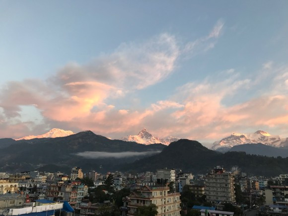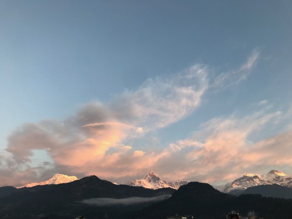 일출의 오묘한 분홍빛을 받은 안나푸르나 그리고 마차푸차레가 보이는 이 장면을 평생 잊지 못할 것 같다는 생각이 들었다. 운 좋게도 옥상에서 볼 수 있는 뷰를 실내에서 볼 수 있는 방이었기에 우리는 창문을 열고 나가 분홍빛이 희미해질 때까지 산맥에서 눈을 떼지 못했다.