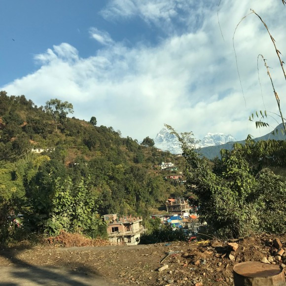 집 떠나온 지 나흘 째, 네팔에 도착한 지 사흘째. 드디어 본격적인 트레킹 시작의 날이 밝았다. 지난밤 룸메와 나는 일찍 잠자리에 눕느라 호텔 옥상에 다녀오지 못했는데, 옥상에 다녀온 대원들이 아침에 눈 뜨자마자 풍광을 꼭 봐야 된다며 일러주었다. 다음날 룸메와 함께 이른 시각에 일어나 커튼을 걷는 순간, 내 눈앞에 믿기지 않는 뷰가 펼쳐졌다.