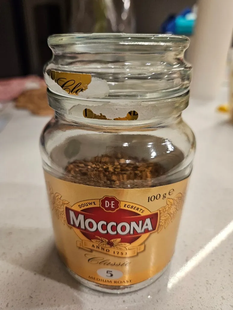 유리병에 든 뉴질랜드산 동서커피 한잔 타서,