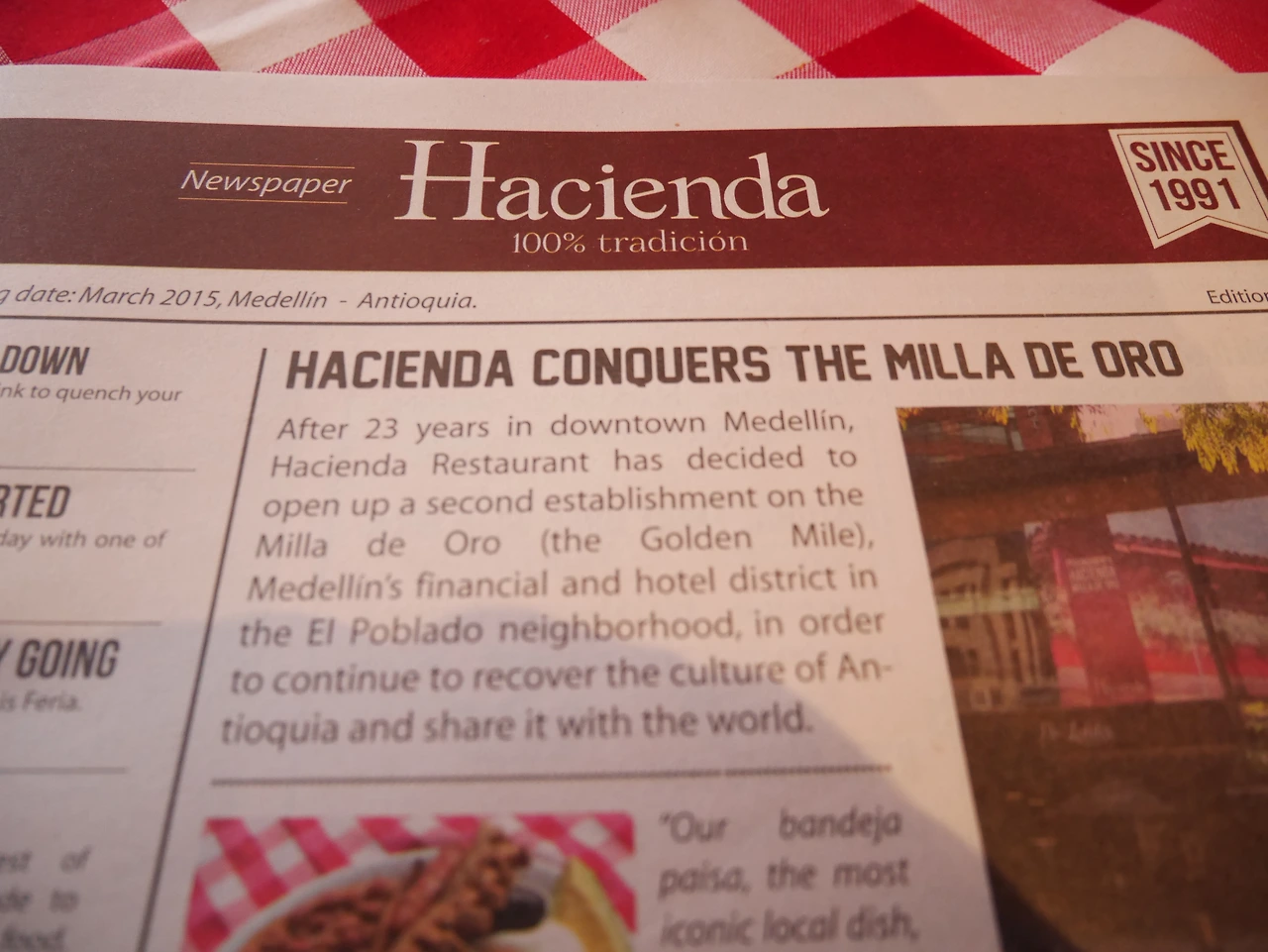 Hacienda라는 이름의 레스토랑이었는데, 1991년부터 운영되고 있다고 했고 메뉴판도 신문 형식으로 만들어