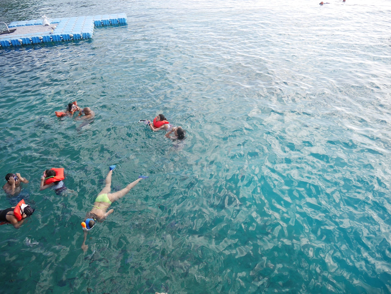 이곳의 수심은 꽤 깊어서 저 아래쪽에서는 호핑투어나 다이빙도 하고 수면 위에서는 스노클링을 한다.