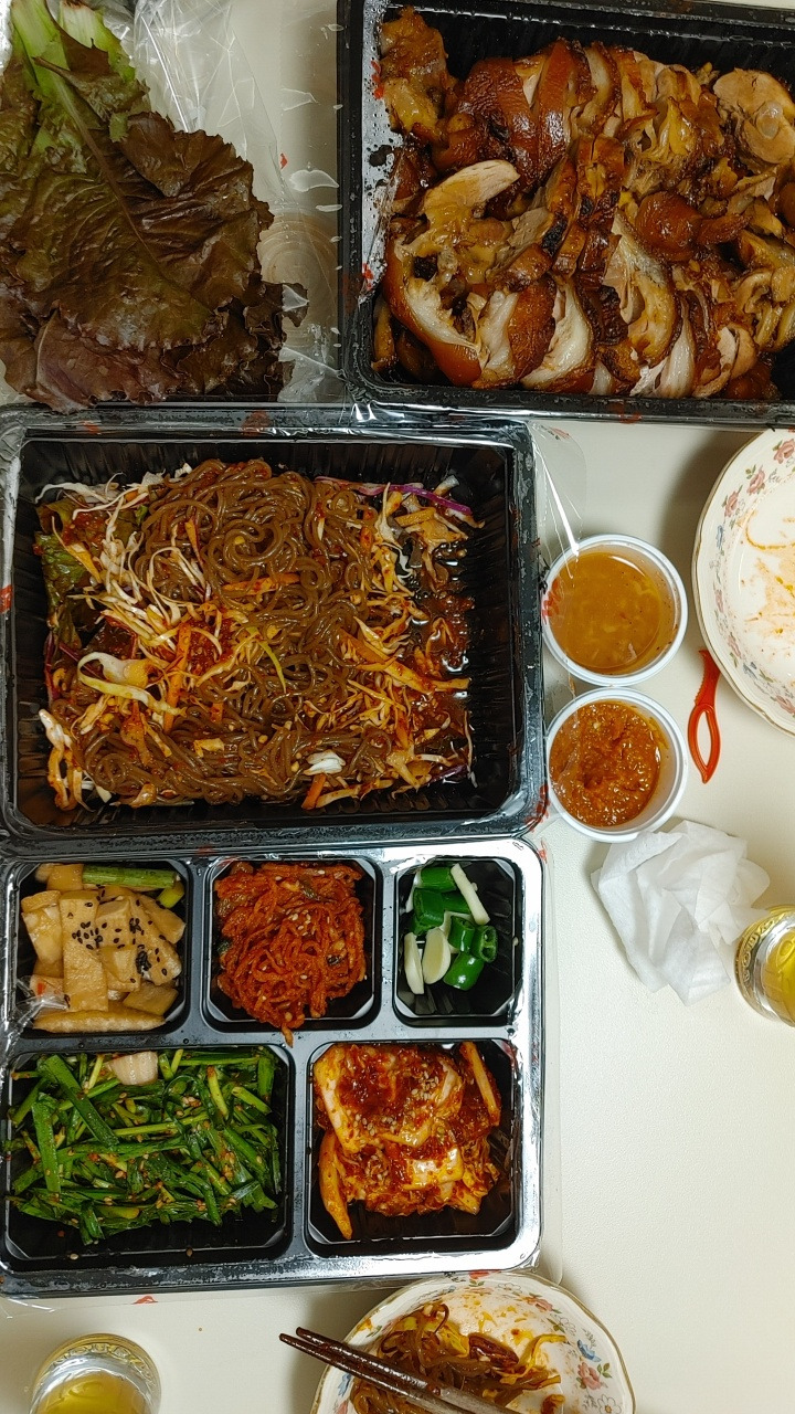 온 가족이 자가격리를 하면서 유일한 즐거움이 되어준 건 배달음식이었다. 평소에는 주말에 한 번만 시켜 먹자는 나름의 규칙이 있었지만 자가 격리하면서 세 끼를 다 해 먹기는 힘들었다. 대형마트 배송은 배송대로, 배달앱은 배달앱대로 참 잘 시켜먹었다. 아니나 다를까 자가 격리기간 동안 식료품비의 비율인 엥겔지수는 급격하게 상승했다. 꽤 성실하게 가계부 앱을 쓰는 편인데 날마다 식비로 십만원은 금방이었다. 일단 스트레스로 꽤 살이 빠진 상태니 무조건 잘 먹어야 한다고 합리화 한다. 코로나로 힘든 음식점에게도 도움이 되는 일이라며 또 합리화 한다. 내 돈내고 먹었지만 늘 대접받는 느낌으로 먹었다. 배달서비스를 해주는 모든 분들께 정말 감사했다.