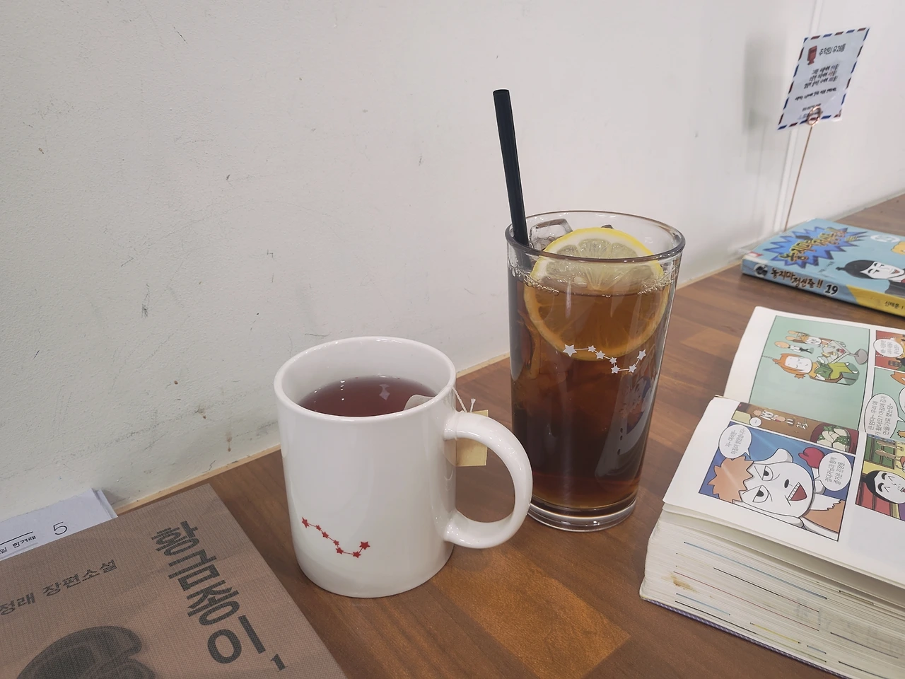 공부를 하는 데는 도저히 발휘되지 않는 아이의 집중력이 오늘도 발휘된다. 놀랍게! 좋아하는 만화책과 달콤한 음료가 있으니. 아이는 '놓치마, 정신줄'을 정신줄을 놓고 킥킥거리며 보고 있다. 만화책이라도 괜찮다. 그렇게라도 집에 가자는 소리 않고, 도서관에서 오래 머물며 친구가 되어주는 아들이 있어서 여기 있는 '현재'의 내가 행복하니까 말이다.