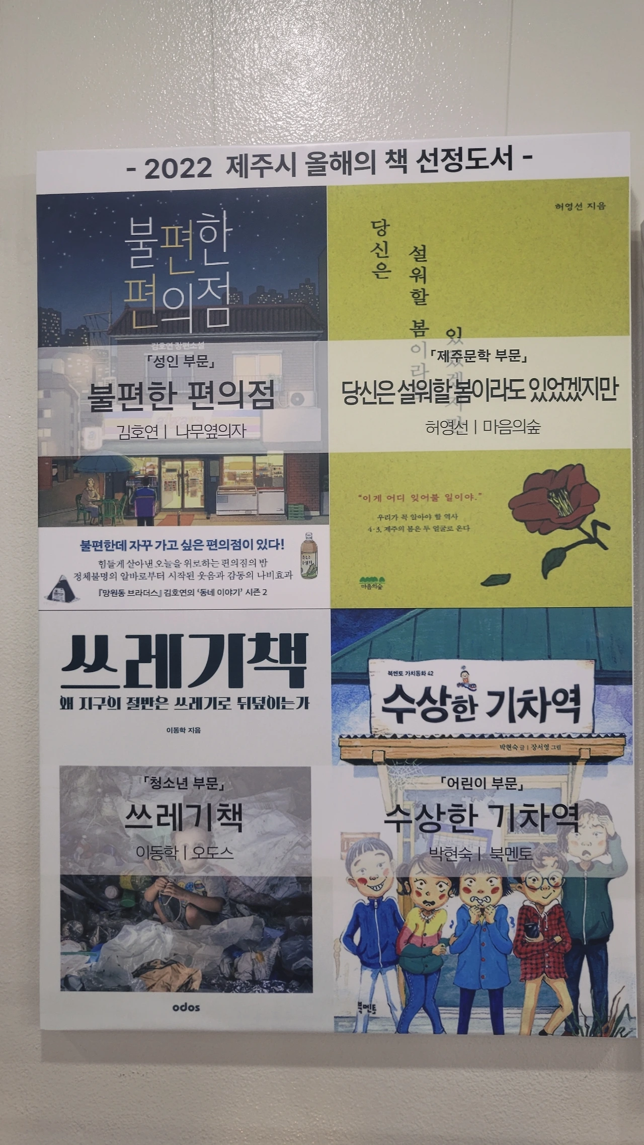 도서관을 둘러보며 우당도서관은 제주의 환경을 지키는데 진심이다라는 생각이 들었다. 모바일 회원증을 이용해 플라스틱으로부터 제주를 보호해 달라는 문구가 자료실 입구부터 안내되어 있는 것이 꽤 인상적이었다. 다른 도서관에서는 본 적이 없는 문구이기 때문이다. 또한 해마다 제주시 올해의 책을 선정하고 있었는데 그중에서도 환경에 관한 책이 몇 권 있었다.