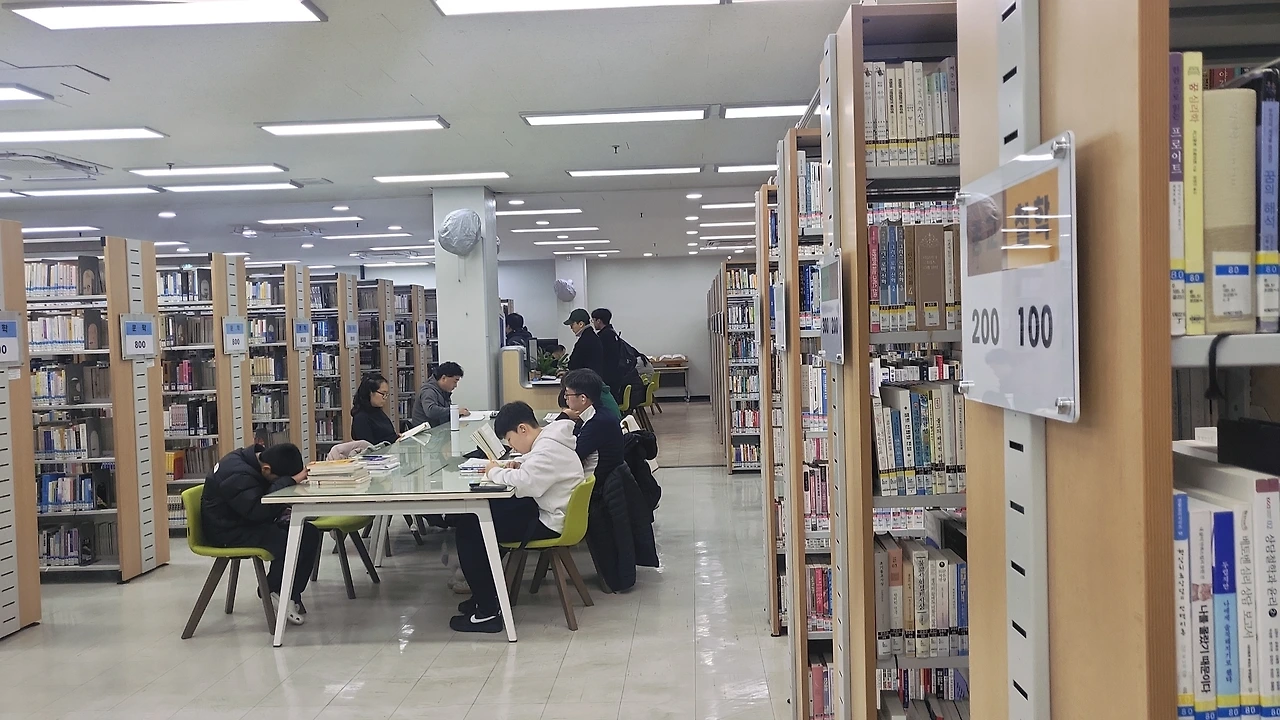 책장 사이에 긴 테이블에 많은 사람들이 책에 집중하고 있다. 작은 소리도 들릴 정도로 조용한 분위기였다.