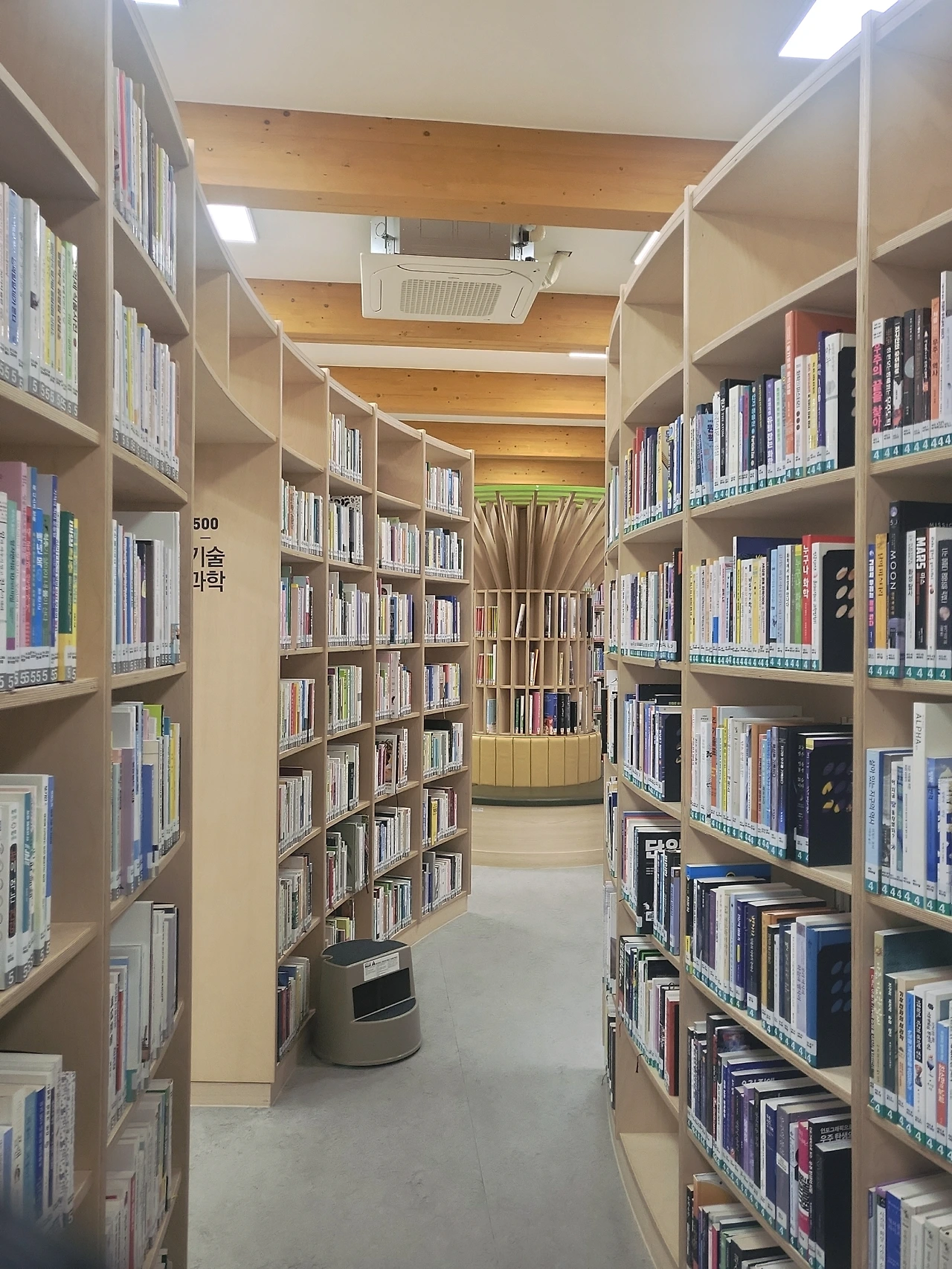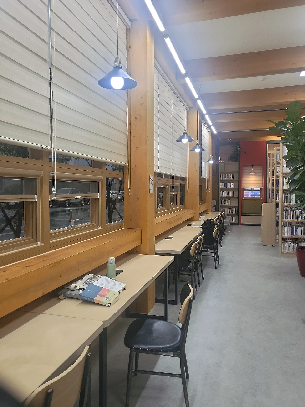 2층에는 작은 열람실이 있고 강연을 하는 공간과 사무실, 외부 테라스가 있다. 거의 1층이 도서관의 전부라고 볼 수 있을 것 같다. 1층은 한 공간으로 연결되어 있는데 한쪽은 어른 책이 있고 다른 한쪽에는 어린이 책이 있다. 어린이 자료실의 책상과 의자도 카페처럼 좋아 보였는데 아이들이 대부분 앉아있어 사진을 찍지는 못했다. 그 좋은 공간에서 대부분의 아이들은 책 대신 휴대폰을 보고 있었다. 도서관에 온 이유가 부모님의 성화에 못 이겨 온 것일까, 아니면 와이파이가 있어서 도서관에 온 것일까? 아니다! 아이들은 책을 읽다 잠시 휴식을 취하는 동안 휴대폰을 보는 것일 거다. 아니면 전자책을 읽고 있었을지도 모른다. 이런 좋은 공간에서 아이들은 책을 외면할 수 없을 것이다.(라고 믿는다.)