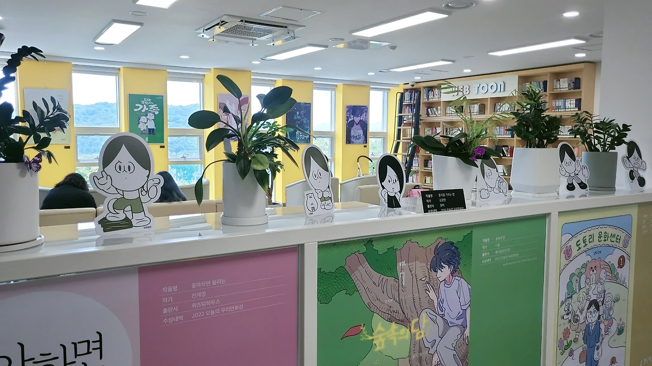 종합자료실 한쪽을 들여다보다 신기한 장소를 발견했다. 바로 웹툰 자료실이었다. 와! 우리 아이들을 데리고 왔으면 얼마나 좋아했을까. 방학이라 최근에 아이들과 만화방에 갔을 때 시간당 요금이라 꽤 비용을 많이 지불했는데 여기서는 다 공짜가 아닌가. 부럽다. 부러워!