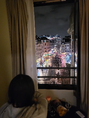 어제 파리에 도착해 숙소에 오기까지의 두려움은 금세 잊을 수 있었다. 목적지인 숙소가 좋았기 때문이다. 숙소에서 창문 밖의 파리 거리를 바라보며 와인 한 잔 하는 그 순간, 모든 힘든 과정을 잊을 수 있었다. 패키지로 왔다면 이런 전망 따위 없는 외딴 호텔이었을 것이다. 자유여행으로 오길 참 잘했다.