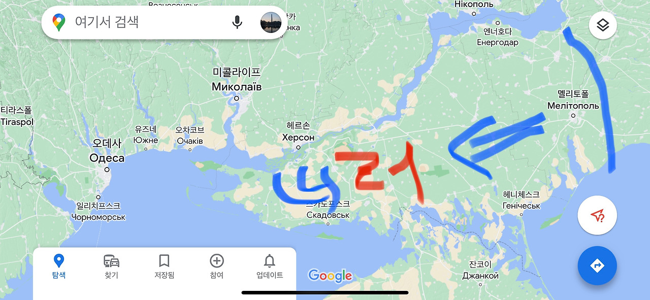 이 때는 헤르손의 조공이 크림반도의 러시아 주력군의 뒤를 치면 포위섬멸을 당하는 것은 오히려 러시아군이 됩니다.