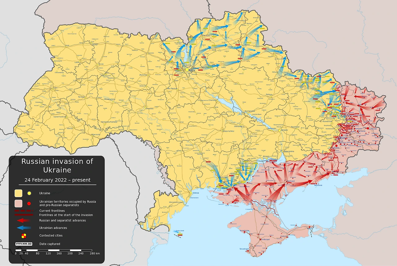아래는 현재의 우크라이나 전선상황이라고 합니다.
