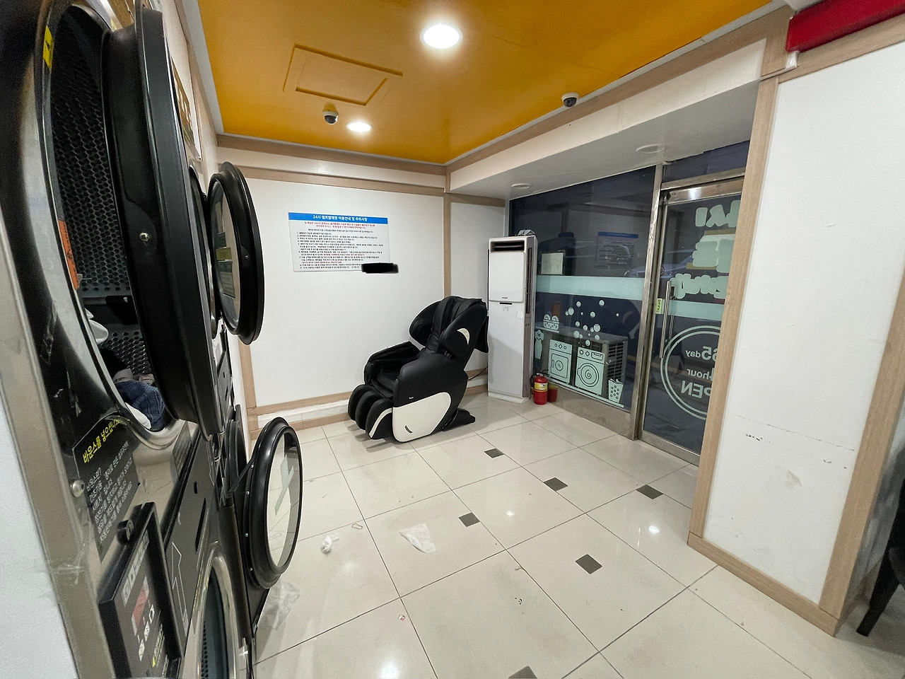 또 빨래방 내의 세탁기, 건조기 소리로 시끄러운 것도 안마의자를 편안히 즐기는데 방해가 됩니다.
