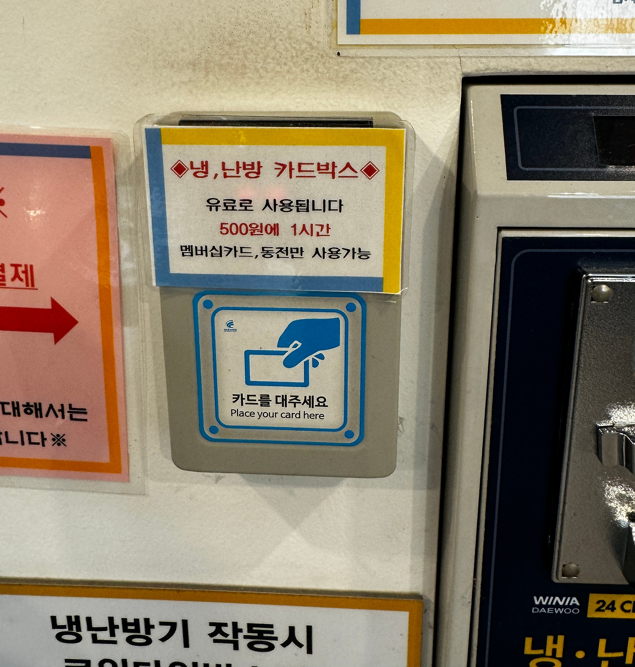 '왜 이렇게 덥지?'하고 주위를 둘러보니 에어콘을 가동하기 위해서는 500원을 결제해야 했습니다.