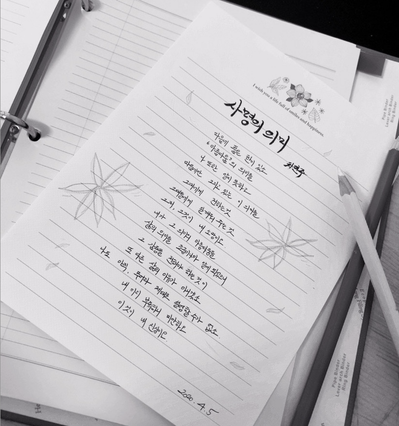 그래서 저는 글을 짓는 것을 참 좋아합니다. 화가 날 땐 화가 나서 시를 쓰고, 슬플 땐 슬퍼서 시를 쓰고나면 시간지나 다시 읽으며 추억할 때 어린 마음이 어떻게 성장할 수 있었는지 그 인과(因果)를 예쁘게 돌아보기 좋기 때문인 것 같습니다. 아무리 개인주의가 강한 시대라지만, 그렇게 예쁜 마음을 쌓다보면 알아주는 사람들이 생기는 듯 합니다.