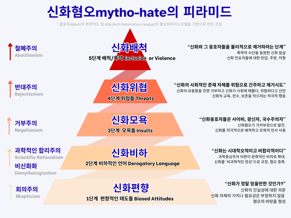 이번 연재는 '신화혐오'의 피라미드 구조를 5단계로 나누어 살펴본다. 가벼운 회의주의로부터 전면적인 배척 곧 철폐까지, 국내외 사례들을 비교하며, 왜곡된 신화혐오가 어떻게 신화적인 상상력을 억누르는지, 그 메커니즘을 드러내고, 이를 넘어서는 비전을 제시할 것이다.