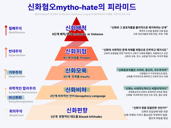 이번 연재는 '신화혐오'의 피라미드 구조를 5단계로 나누어 살펴본다. 가벼운 회의주의로부터 전면적인 배척 곧 철폐까지, 국내외 사례들을 비교하며, 왜곡된 신화혐오가 어떻게 신화적인 상상력을 억누르는지, 그 메커니즘을 드러내고, 이를 넘어서는 비전을 제시할 것이다.