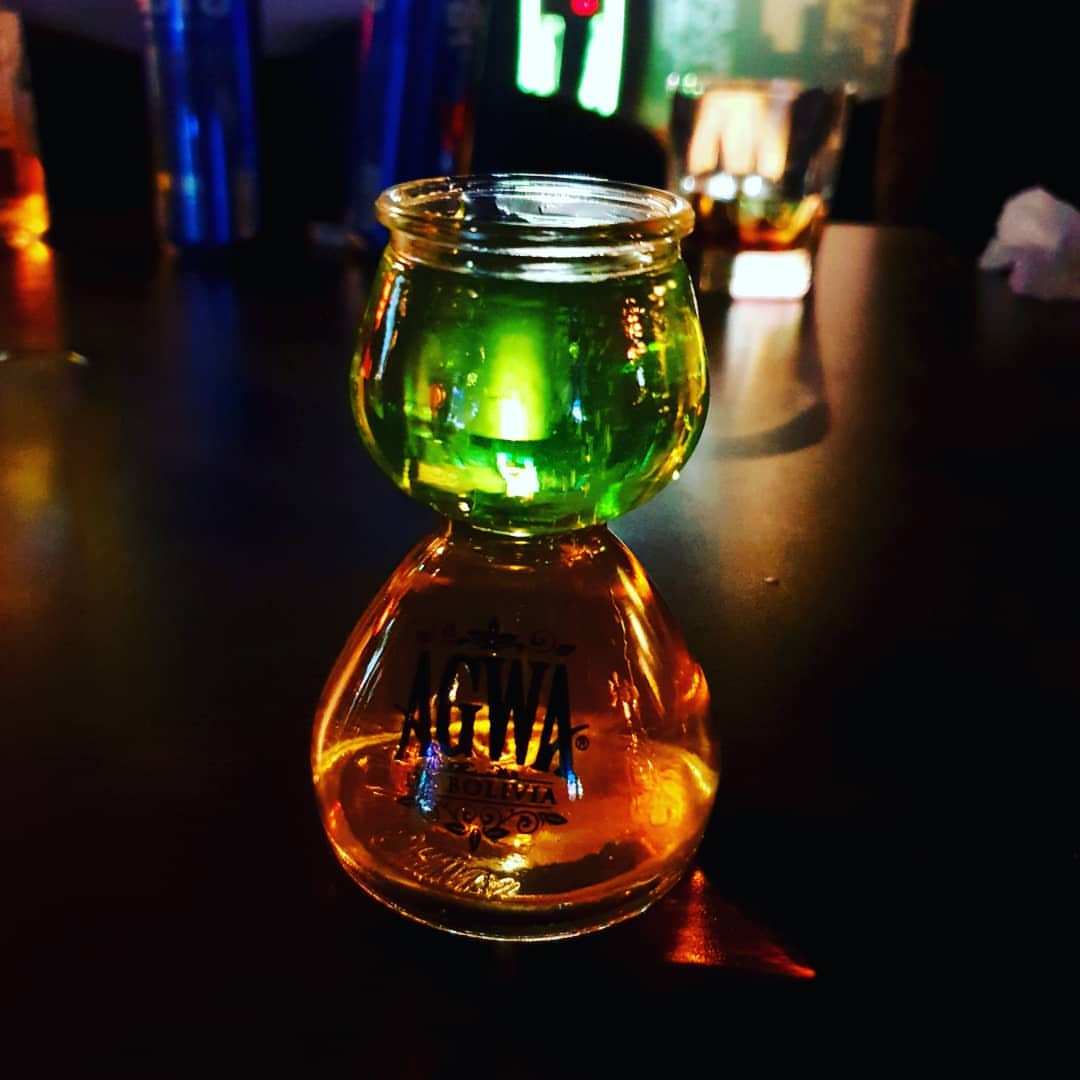 나는 아그와 글래스의 관능적인 라인을 흘겨보며 골반을 넘어 허리에 차오를 때까지 에너지 드링크를 천천히 부었다. 들어갈 덴 들어가고 나올 덴 나온, 매혹적인 몸매라 아그와 밤 칵테일이 원하는 수준까지 드링크를 붓는 것은 그리 어렵지 않았다. 허리까지 수위가 높아진 것이 한눈에 보였다. 글래스의 허리부터 미드까지는 초록빛의 아그와를 흘려보냈다. 마치 초록색 크롭탑 아래 구릿빛 스커트를 입은 여인 같았다. 나와 A는 탐스러운 그녀를 한 입에 맛보았다.