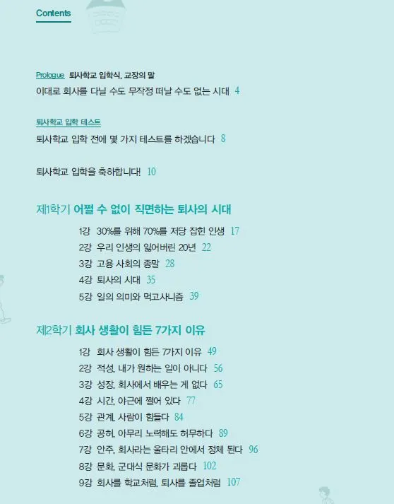아래는 <퇴사학교> 서문과 목차입니다.