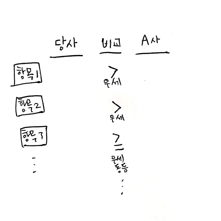 현재 경쟁사 대비 객관적으로 '열세'인 부분이라도 향후 이러 이러한 방법으로 차별화하겠다는 계획이라도 넣어 '우세'로 표기하는 웃지 못할 일들도 벌어졌다. 그 장표들만 보면 마치 전 분야에서 당사가 모두 이기고 있는 것처럼 착각하게 되었다. 그것이 우리의 절대전략이자 마법의 주문이었다.