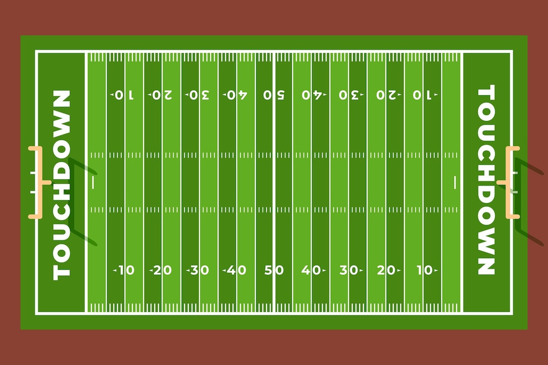 경기장을 보면 양 끝에 골 포스트가 있고 그 앞에 각각 엔드존이 있다. 그 사이는 플레잉 필드인데 공격진이 공을 가지고 제한된 시간과 횟수 안에 상대 진영의 엔드존으로 들어가면 6점의 점수를 얻는다. 이것이 많이 들어 봤을 '터치다운'의 개념이다. 터치다운을 하면 필드골 등의 추가득점 기회가 또 있다.