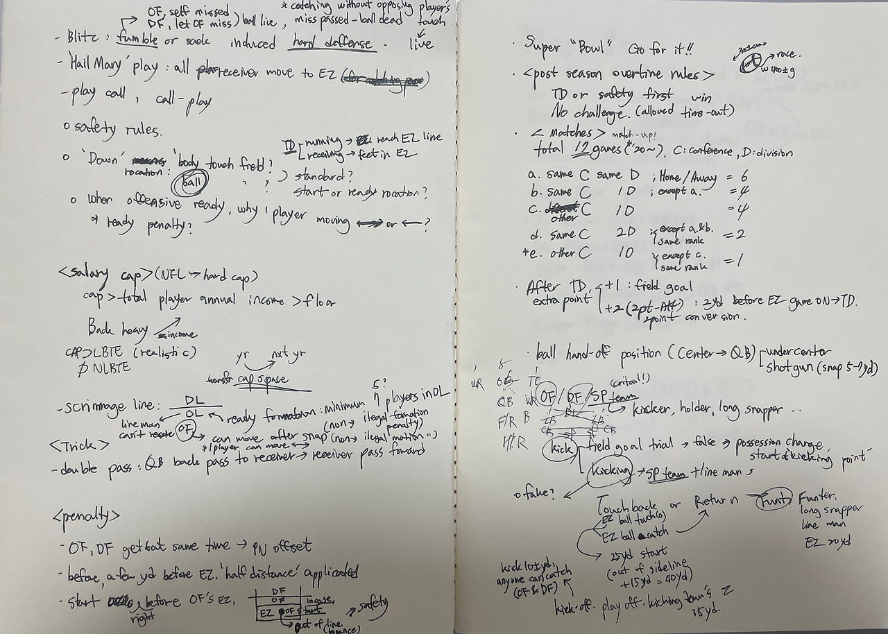 그중에서도 미식축구를 좋아하게 되었다. 사실 미식축구 얘기를 하고 싶어서 앞서 축구로 열심히 빌드업한 것이다.