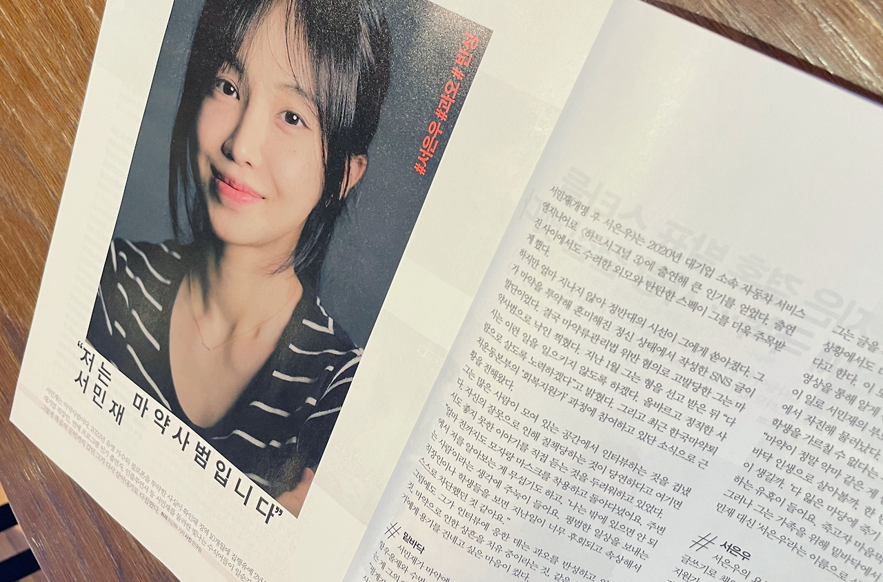 그 후 평범한 일상생활을 하며 한동안 반무의식, 반의식적으로 잊고 있다가 오랜만에 브런치를 쓰기로 결심하며 참고하려고 다시 잡지를 펼쳤다. 마음이 무방비 상태였던 건지 스스로를 마약사범이라고 소개하며 웃고 있는 내 모습을 보니 순간 소름이 돋고 역하기도 했다. ‘독자가 이 페이지를 본 첫 느낌이 이런 걸까?’ 하며 잠깐 충격에 빠졌다. 기왕 본문도 읽어주셨기를 바랐다. 기자님과 함께 꽤 오랜 시간을 들여 작성한 것이니까.