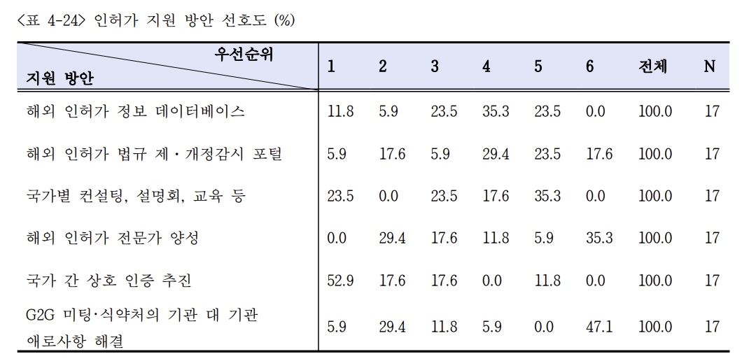 또한 조사 대상 제약사의 해외 인허가 담당자들이 선호하는 인허가 지원 방안은 다음과 같습니다.