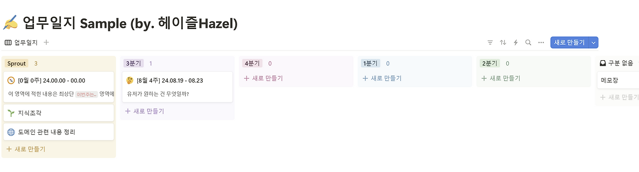 분기별 보드를 통해서는 1년의 기록을 한눈에 볼 수 있고 카드 하나에 한 주가 담겨있습니다.