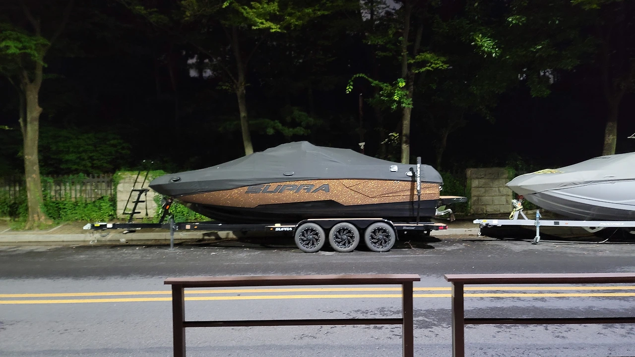 여의도 국회의사당 뒷길 벚꽃나무길에 접어드는데, 못 봤던 보트들이 몇 대 서 있네요. 현대 사회에서 부자들의 욕망 리스트 최상위 아이템 중 하나가 개인용 요트, 보트라는데(링크), 야심한 밤에 가로등 불 아래에서도 웅장한 자태를 자랑합니다. 저도 돈 많이 벌어서 저걸 가져야겠다는 생각에 뛰다 말고 사진도 남겼습니다.(SUPRA, 24,000만 원부터 $186,000~)