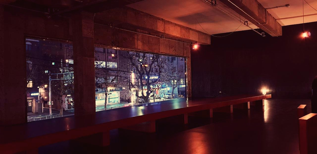 시간을 흘려보낼 곳을 찾으려 이층으로 오르는 길은 더 검다. 일층의 어둠에 눈이 적응하지 않았다면, 손을 벽에 짚어야 할 만큼 검은 복도를 지나 검은 계단을 오르면 아까보다 더 육중한 커다란 문이 있다. 힘껏 밀어서 공간으로 들어서면 비로소 보이는 백열등 빛과 그 빛을 둘러앉은 사람들이 보인다. 그들 모두 각기의 일에 몰두하고 있다.